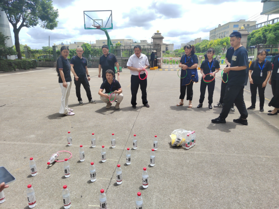 活動一開始,各位“套圈達人”便在舒適的天氣里紛紛大顯身手。每人手握三個套圈,眼神中滿是期待與專注。涼爽的風拂過臉頰,驅散了可能的疲憊,讓大家更能專注于瞄準目標。有的同事站在指定位置,微微屈膝,身體前傾,瞄準目標后,手腕輕輕一抖,套圈便如離弦之箭般飛了出去,在空中劃過一道優美的弧線,精準地落在心儀獎品上,贏得周圍一片喝彩;有的同事則采用穩健的投擲方式,小心翼翼地調整角度和力度,仿佛在進行一場精密的操作;還有的同事心態輕松,帶著幾分隨性拋出套圈,享受這涼爽天氣里游戲過程中的樂趣。現場氣氛熱烈非凡,大家互相加油鼓勁,歡聲笑語隨著微風回蕩在籃球場上空。